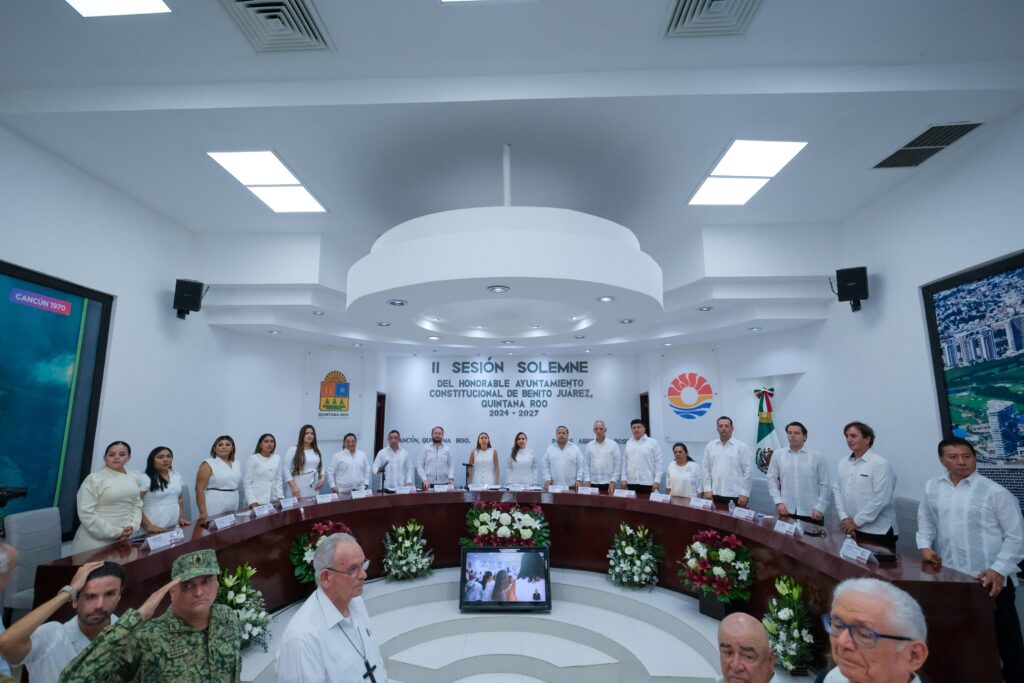 Encabezado por la presidenta municipal Ana Paty Peralta de la Peña, el Cabildo de Benito Juárez entregó la Medalla al Mérito Ciudadano al licenciado Benjamín de la Peña Mora, con la presencia de los representantes de los tres poderes, la gobernadora Mara Lezama Espinosa, el magistrado Heyden Cebada Rivas, presidente del Tribunal Superior de Justicia, y el diputado Jorge Arturo Sanén Cervantes, presidente de la Junta de Gobierno y Coordinación Política de la XVIII Legislatura.
