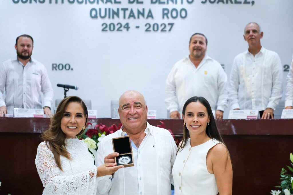 Al recibir la medalla al Mérito Ciudadano, Benjamín de la Peña recordó que hace 46 años eligió vivir en Cancún. “Uno no elige donde nacer, pero si elige donde vivir. Llegué con mi familia y una maleta, y encontramos un lugar donde echar raíces” expresó.