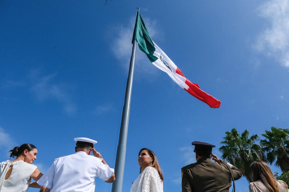 La Bandera Nacional, añadió Mara Lezama, ha sido testigo de las grandes luchas de nuestra nación, “el final de la Independencia, las Leyes de Reforma, la Revolución y ahora de la lucha por la gran transformación de México y el cambio verdadero”.