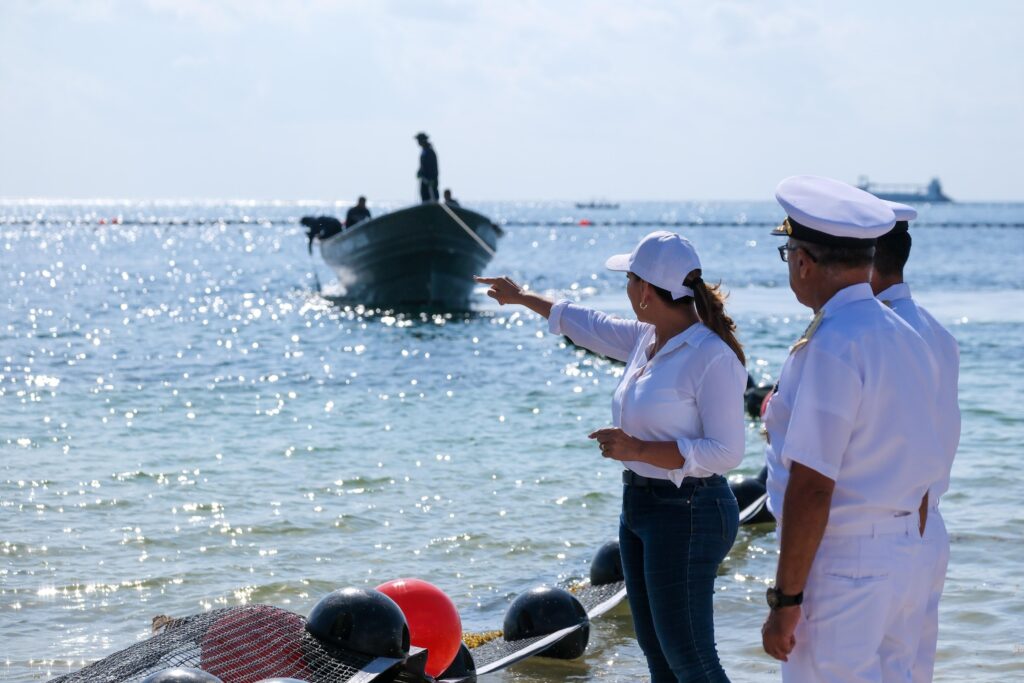 En la playa Ojo de Agua, la gobernadora Mara Lezama, acompañada de la presidenta municipal Blanca Merari Tziu, así como del Coordinador de la Estrategia de Atención al Sargazo de la Secretaría de Marina, contralmirante Topiltzin Tlacaletl Flores Jaramillo, aseguró que ya estamos preparados para el inicio de la temporada de sargazo 2025.
