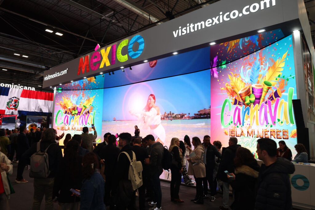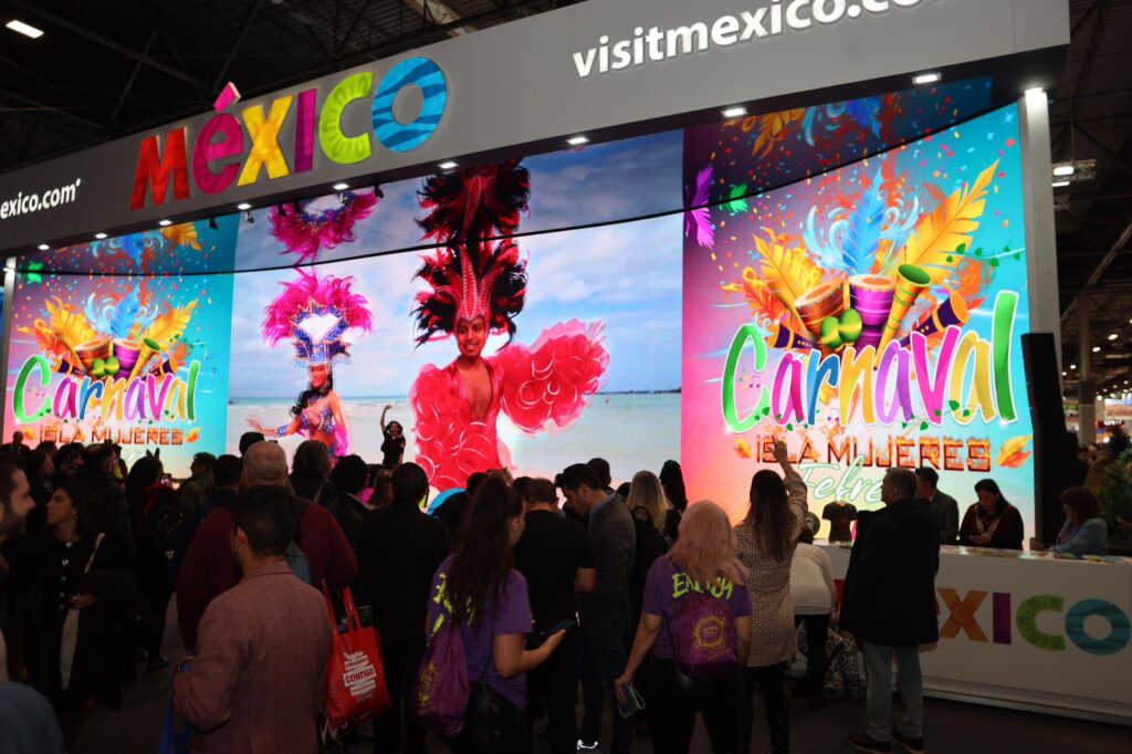 En la pantalla gigante, ubicada en la entrada principal del Pabellón de México, cientos de touroperadores, agencias de viajes, aerolíneas y grupos hoteleros internacionales, pudieron conocer de primera mano la esencia del icónico carnaval, para ofertarlo a visitantes de todo el mundo.