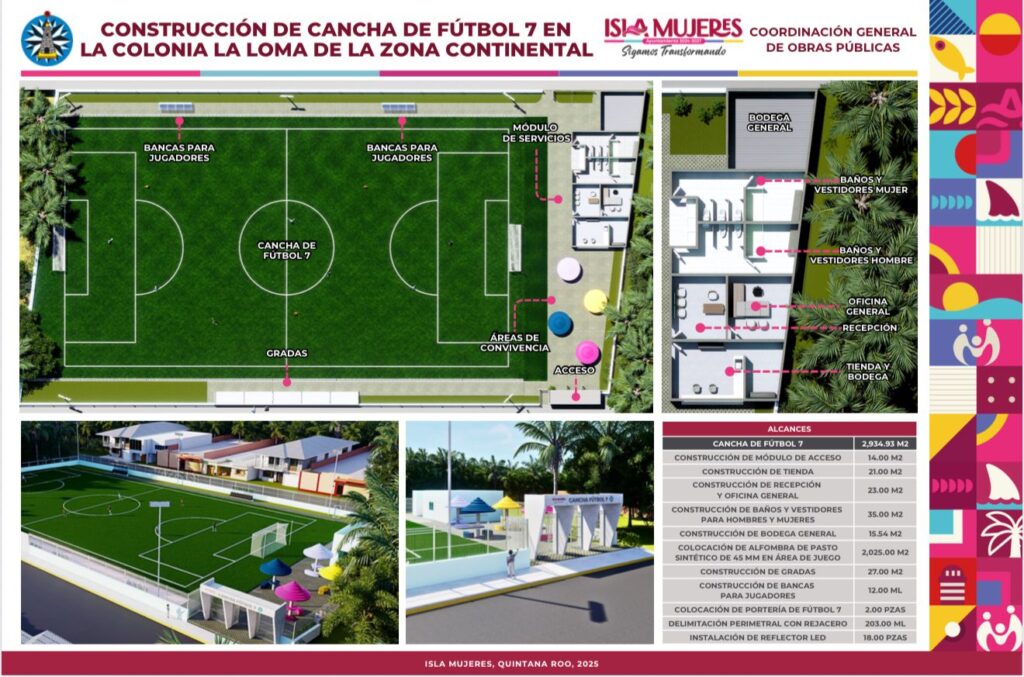 Destacó que su administración impulsa obras sólidas tanto en la Isla como en la Zona Continental y recordó que, paralelamente, se reconstruye el campo de fútbol soccer en la Isla.