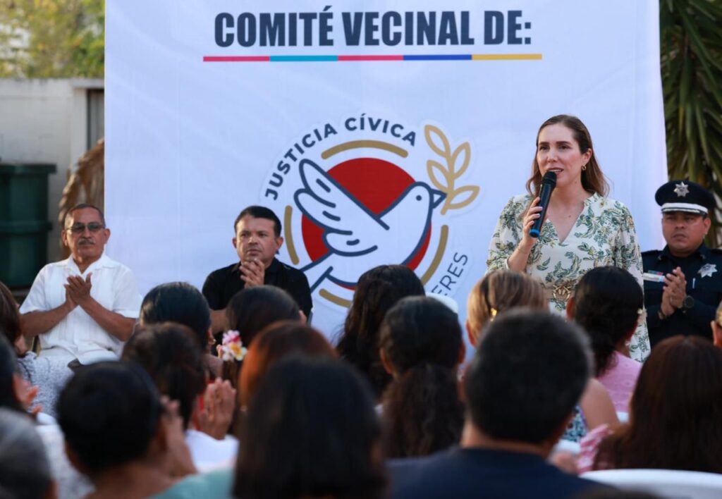 Isla Mujeres, Quintana Roo.– Como parte de la consolidación de un modelo de gobernanza participativa y de fortalecimiento del tejido social, la Presidenta Municipal, Atenea Gómez Ricalde encabezó esta tarde la toma de protesta e instalación de 35 Comités Vecinales de Construcción de Paz y Justicia Cívica, en un acto realizado en la Plaza del Centro Comunitario de Zona Continental.
