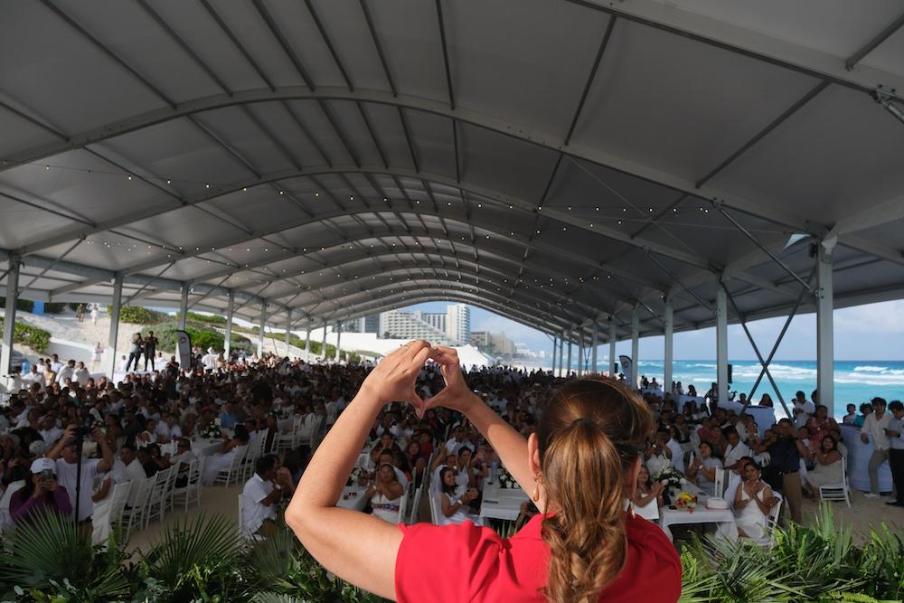 Después de escuchar la bienvenida de la presidenta Ana Paty Peralta y la ceremonia que formalizó la unión, la gobernadora Mara Lezama expresó su satisfacción en relación a las bodas colectivas: Hoy, vemos aquí a parejas que algunas han compartido toda una vida, que otras más han criado hijos, e incluso hasta nietos, que han formado generaciones enteras, y que hoy, frente a sus familias y seres queridos, deciden reafirmar su compromiso.