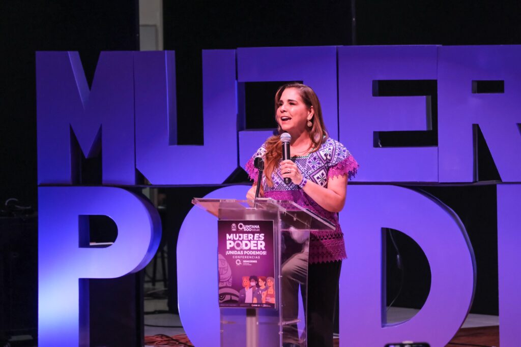 Chetumal.- La gobernadora Mara Lezama Espinosa exhortó hoy a todas las mujeres de Quintana Roo no solo a consolidar logros sino a fortalecer la lucha para derribar los muros de la desigualdad, la violencia y la discriminación, durante la ceremonia inaugural del ciclo de conferencias “Mujer es Poder: ¡Unidas Podemos!” en el teatro de la Universidad Autónoma de Quintana Roo (UQROO), en esta capital.