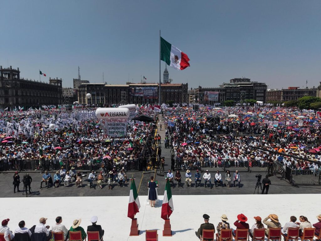 “Estamos en el Zócalo de la mano del pueblo apoyando a nuestra presidenta Claudia Sheinbaum Pardo en la defensa de la soberanía” expresó la titular del Ejecutivo.