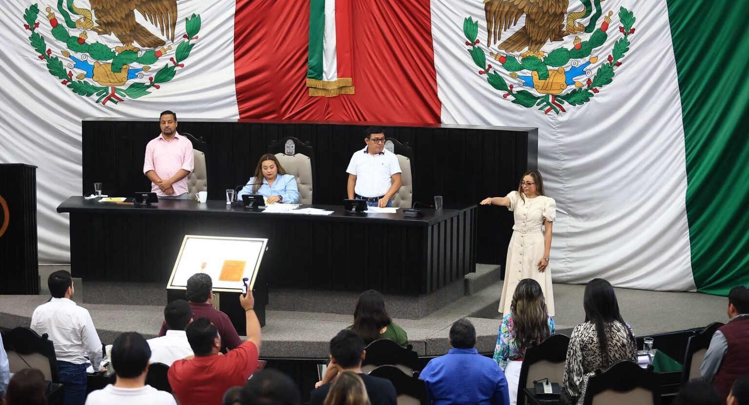 Por otra parte, el Pleno de la XVIII Legislatura tomó protesta a la maestra Judith Alejandra Medina Manrique, como titular de la Unidad de Vigilancia de la Comisión de Hacienda, Presupuesto y Cuenta, conforme a lo dispuesto en el Artículo Transitorio Segundo del Decreto Número 146 expedido por la H. XVIII Legislatura del Estado de Quintana Roo.