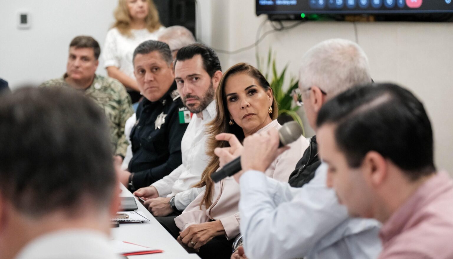 Durante la reunión se escucharon y atendieron los diversos planteamientos de los integrantes de la mesa de trabajo, entre ellos Sergio González Rubiera, presidente de la Asociación Mexicana de Agencias de Turismo Receptivo (AMATUR); Antonio Chaves Palomo, presidente de la Asociación de Hoteles de la Riviera Maya; Carlos Tovilla Padilla, titular de la Fiscalía General de la República en Quintana Roo; Carlos Alberto Lara Camargo, comandante de la 31 Unidad de la Guardia Nacional; Ana Luisa Torresillas, presidenta del Comité de Gerentes de Líneas Aéreas de Cancún; Bernardo Cueto, secretario de Turismo de la Secretaría de Turismo de Quintana Roo; Carlos Trueba Coll, Director general del aeropuerto internacional de Cancún.