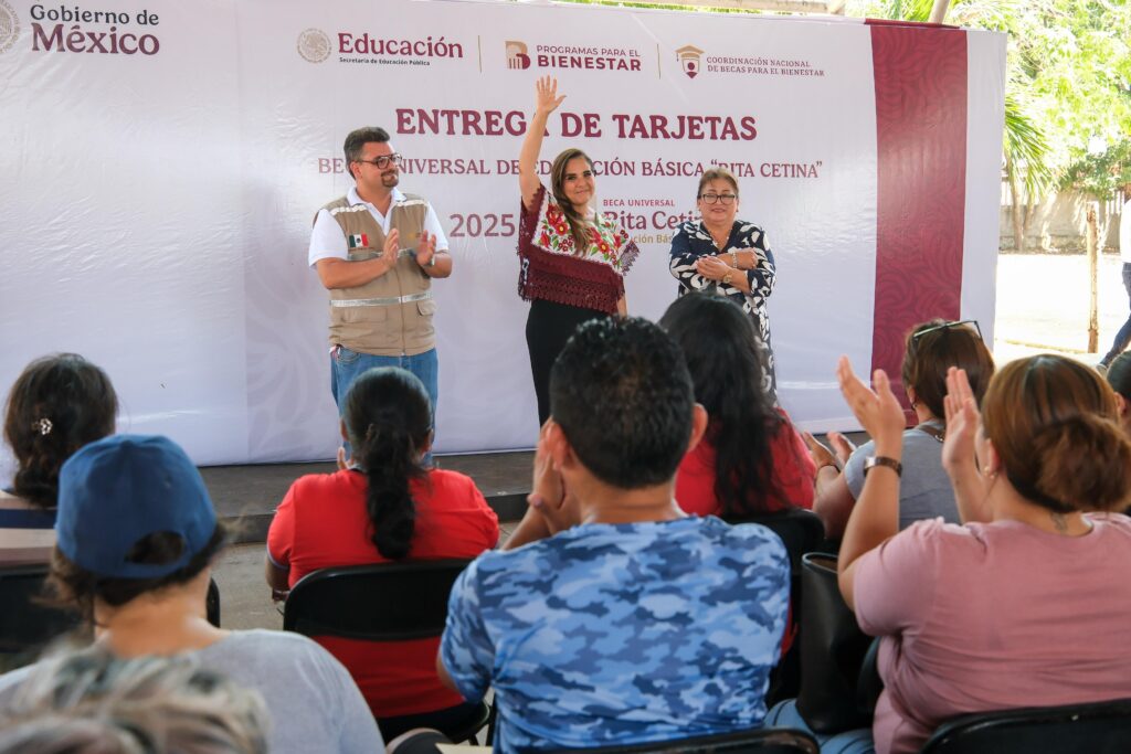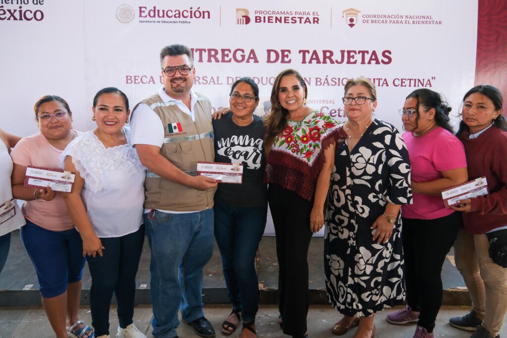 Asimismo, felicitó la coordinación federal y estatal para la entrega de estas tarjetas, representados por el coordinador nacional de Becas para el Bienestar, Julio León Trujillo, y la secretaria de Educación, Elda Xix Euán.