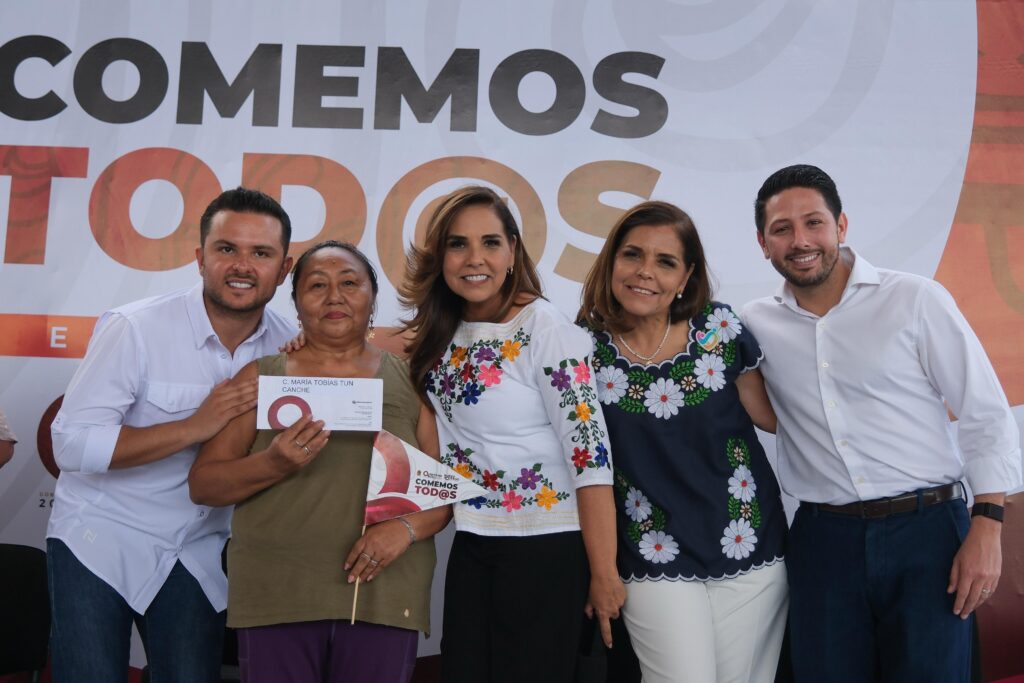 Cancún.- “Comer bien, alimentarse, es un derecho y el bienestar empieza en la cocina, en las mesas, en el plato que se sirve todos los días. No hay paz sin familias fuertes, y no puede haber un estado justo si hay niñas, niños, seres humanos que se van a dormir con el estómago vacío” expresó la gobernadora Mara Lezama Espinosa al entregar tarjetas y paquetes alimentarios del programa “Comemos Tod@s” en Benito Juárez.