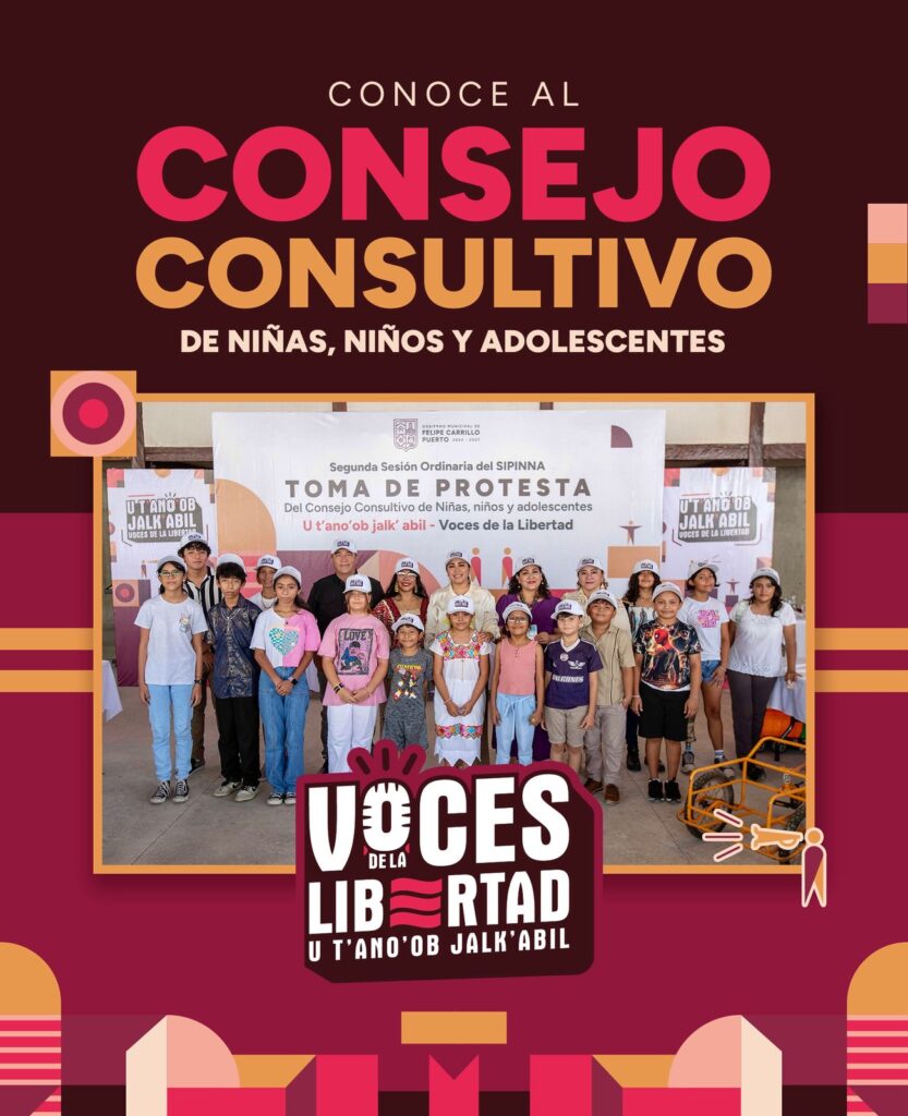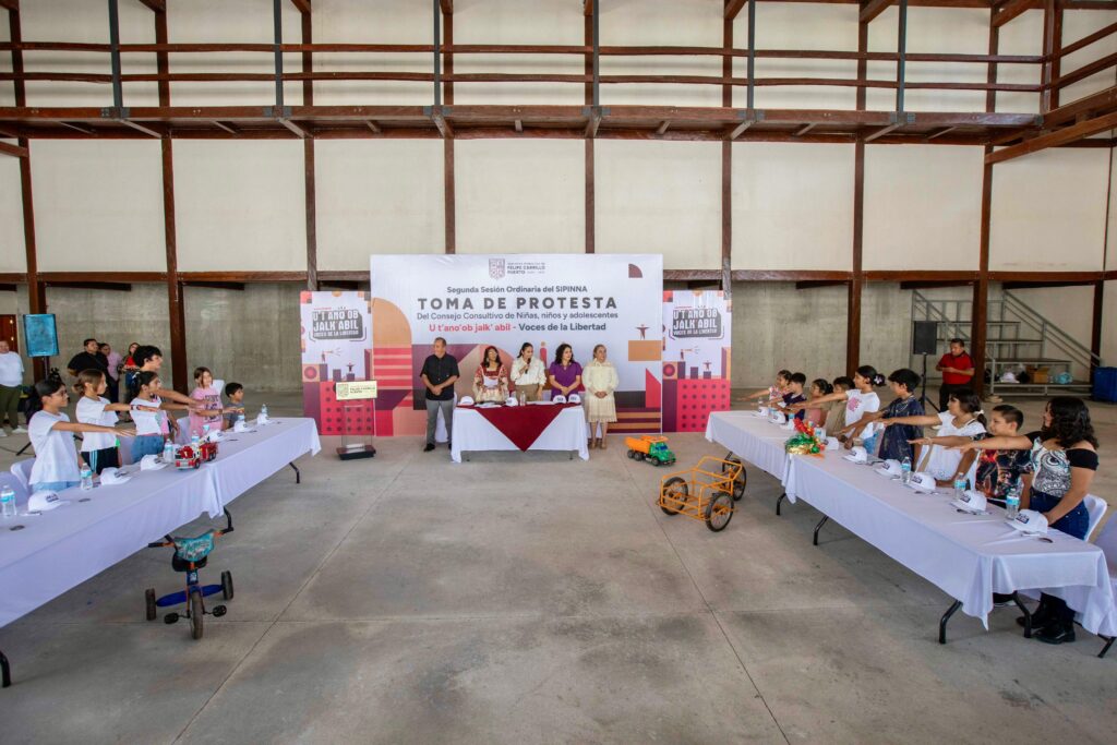 La presidenta municipal de Felipe Carrillo Puerto, Mary Hernández, encabezó la instalación del consejo consultivo municipal de niñas, niños y adolescentes U t’ ano’ ob jalk’ abil, voces de la libertad, en el marco de la segunda sesión ordinaria del sistema municipal de protección integral de niñas, niños y adolescentes (SIPINNA).