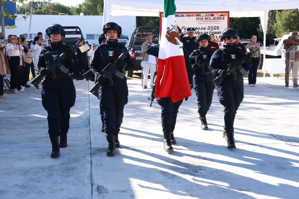 Isla Mujeres, Quintana Roo.- En el marco de la ceremonia de honores a la bandera del mes de febrero, que se realizó en las instalaciones de la Secretaría Municipal de Seguridad Ciudadana, se dieron a conocer los logros más relevantes en materia de seguridad en Isla Mujeres.