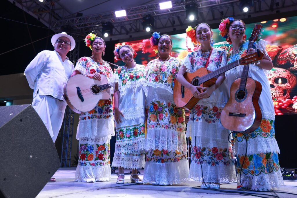 Isla Mujeres, Quintana Roo.- Dando continuidad a las actividades del Festival Luz y Vida “Entre Vivos y Muertos”, el Gobierno de Isla Mujeres, que encabeza la Presidenta Municipal, Atenea Gómez Ricalde, celebró con gran éxito el tradicional Hanal Pixán “Noche de Tradiciones”, una velada llena de color, música, danza y sabor, que reunió a familias isleñas y visitantes en la Explanada Municipal.