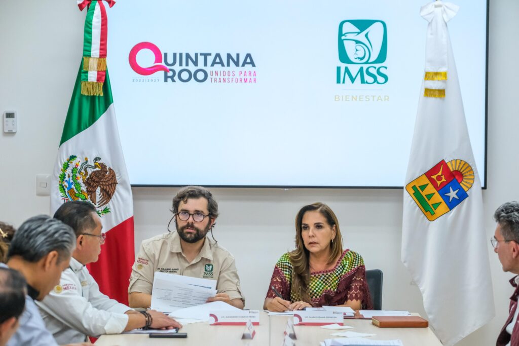 Cancún.- La gobernadora Mara Lezama Espinosa encabezó una reunión de trabajo con el director general del IMSS Bienestar, Alejandro Svarch Pérez, y su equipo de trabajo para revisar aspectos fundamentales para mejorar la atención hospitalaria en el estado, como en los nosocomios de Isla Mujeres y Chetumal con el Hospital Oncológico.