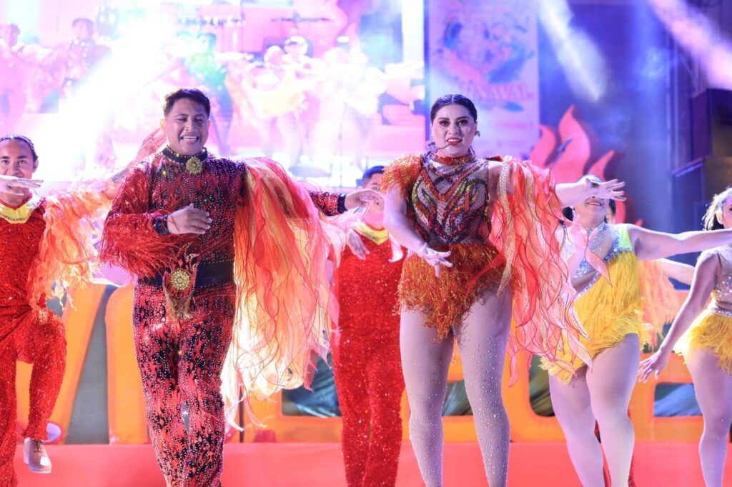 La magia del carnaval se hizo presente con el show de fuego, donde los artistas realizaron asombrosas acrobacias y juegos pirotécnicos y posteriormente la presentación de las diferentes comparsas.