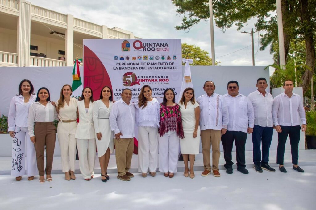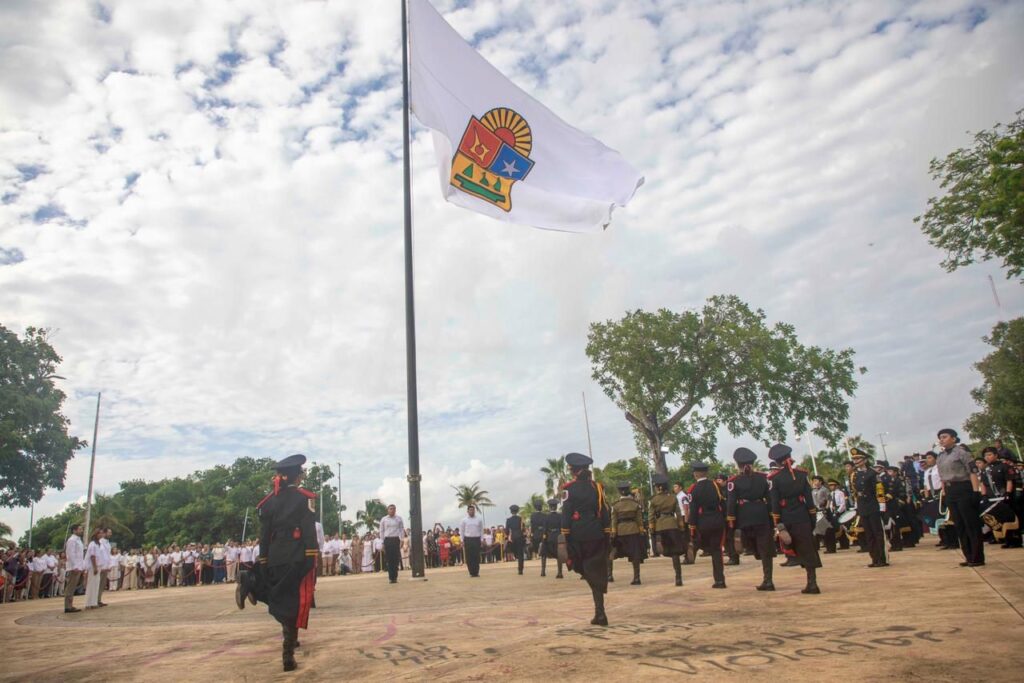 La Presidenta Municipal de Felipe Carrillo Puerto, acompañó a la Gobernadora del Estado, Lic. Mara Lezama Espinosa a la ceremonia de izamiento de la bandera del Estado, por el 51 aniversario de la creación de Quintana Roo a Estado Libre y Soberano.